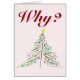 This silly, snide Christmas card asks "Why?" on the front, above a simple, artistic Christmas tree. On the inside it further asks, "Why does it have to be Christmas, yet again?"