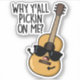 Why Y'all Picking On Me Funny Guitar Pun features a cute guitar asking why he's being picked on . Perfect Puns gift for family and friends who love cute guitar puns.
