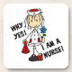 A cute knobby kneed cartoon nurse and text that reads Why Yes I Am A Nurse on nurse T-shirts, hoodies, mugs, key chains, magnets, cards, stickers, wall clocks, pillows, and other nurse apparel and gifts.
