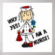 A cute knobby kneed cartoon nurse and text that reads Why Yes I Am A Nurse on nurse T-shirts, hoodies, mugs, key chains, magnets, cards, stickers, wall clocks, pillows, and other nurse apparel and gifts.