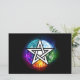 Artistically drawn, luminous pentagram with five magical elements, water, earth, fire, astral, air on black background. Wiccan pentagram. Wicca