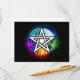 Artistically drawn, luminous pentagram with five magical elements, water, earth, fire, astral, air on black background. Wiccan pentagram. Wicca