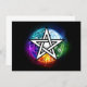 Artistically drawn, luminous pentagram with five magical elements, water, earth, fire, astral, air on black background. Wiccan pentagram. Wicca