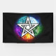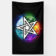 Artistically drawn, luminous pentagram with five magical elements, water, earth, fire, astral, air on black background. Wiccan pentagram. Wicca