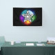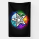 Artistically drawn, luminous pentagram with five magical elements, water, earth, fire, astral, air on black background. Wiccan pentagram. Wicca