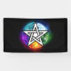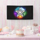 Artistically drawn, luminous pentagram with five magical elements, water, earth, fire, astral, air on black background. Wiccan pentagram. Wicca