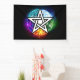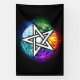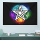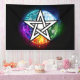 Artistically drawn, luminous pentagram with five magical elements, water, earth, fire, astral, air on black background. Wiccan pentagram. Wicca