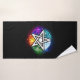 Artistically drawn, luminous pentagram with five magical elements, water, earth, fire, astral, air on black background. Wiccan pentagram. Wicca