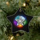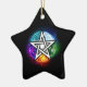 Artistically drawn, luminous pentagram with five magical elements, water, earth, fire, astral, air on black background. Wiccan pentagram. Wicca