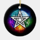 Artistically drawn, luminous pentagram with five magical elements, water, earth, fire, astral, air on black background. Wiccan pentagram. Wicca