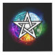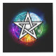 Artistically drawn, luminous pentagram with five magical elements, water, earth, fire, astral, air on black background. Wiccan pentagram. Wicca