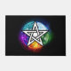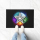 Artistically drawn, luminous pentagram with five magical elements, water, earth, fire, astral, air on black background. Wiccan pentagram. Wicca