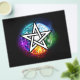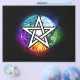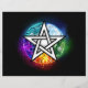 Artistically drawn, luminous pentagram with five magical elements, water, earth, fire, astral, air on black background. Wiccan pentagram. Wicca