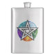 Artistically drawn, luminous pentagram with five magical elements, water, earth, fire, astral, air on black background. Wiccan pentagram. Wicca