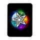 Artistically drawn, luminous pentagram with five magical elements, water, earth, fire, astral, air on black background. Wiccan pentagram. Wicca