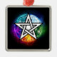 Artistically drawn, luminous pentagram with five magical elements, water, earth, fire, astral, air on black background. Wiccan pentagram. Wicca
