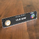 The product was just like it was in the pics, everyone at work loves it! Came on time and it was neatly packed. Bold and Clear. My name can be seen from far and it matches in color.