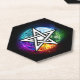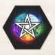 Artistically drawn, luminous pentagram with five magical elements, water, earth, fire, astral, air on black background. Wiccan pentagram. Wicca