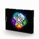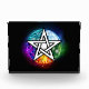 Artistically drawn, luminous pentagram with five magical elements, water, earth, fire, astral, air on black background. Wiccan pentagram. Wicca