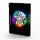 Artistically drawn, luminous pentagram with five magical elements, water, earth, fire, astral, air on black background. Wiccan pentagram. Wicca