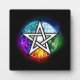 Artistically drawn, luminous pentagram with five magical elements, water, earth, fire, astral, air on black background. Wiccan pentagram. Wicca