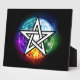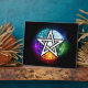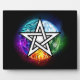 Artistically drawn, luminous pentagram with five magical elements, water, earth, fire, astral, air on black background. Wiccan pentagram. Wicca