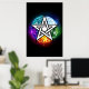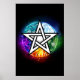 Artistically drawn, luminous pentagram with five magical elements, water, earth, fire, astral, air on black background. Wiccan pentagram. Wicca