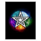 Artistically drawn, luminous pentagram with five magical elements, water, earth, fire, astral, air on black background. Wiccan pentagram. Wicca