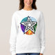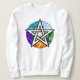 Artistically drawn, luminous pentagram with five magical elements, water, earth, fire, astral, air on black background. Wiccan pentagram. Wicca