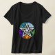 Artistically drawn, luminous pentagram with five magical elements, water, earth, fire, astral, air on black background. Wiccan pentagram. Wicca