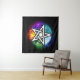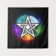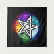 Artistically drawn, luminous pentagram with five magical elements, water, earth, fire, astral, air on black background. Wiccan pentagram. Wicca