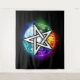 Artistically drawn, luminous pentagram with five magical elements, water, earth, fire, astral, air on black background. Wiccan pentagram. Wicca