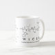 Wicek spelled out in amino acids as W I C E K (Tryptophan Isoleucine Cysteine Glutamic acid Lysine) on a mug for the scientist in you.