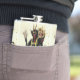 Well made flask, a little better than I had expected. Flask came in clear plastic box which gave it a nice presentation when I took it out of the zazzle packaging. Image is not printed on flask but on sticker. Don't know how this will hold up I haven't used it yet. This would make a Great gift! I plan to purchase more for friends! Cheers. I thought a little brighter than computer. Very crisp, writing wasn't