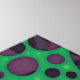 An array of variously sized purple circles overlays a vibrant green background, creating a visually striking pattern. The circular shapes have varying shades, adding depth and complexity to the design. Illustration design of trippy abstract purple and green slime holes. Tags: abstract, dots, geometric, crazy, green, purple, hallucinogenic, holes, psychedelic, lava, trippy, trypophobia