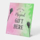 This enchanting pedestal sign lets everyone know just where to leave their gifts—with a magical “Place Your Magical Gift Here” message with a pink and green background and wicked witch hat. This gift table sign will pair nicely with our other Wicked party decor.