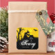 A wicked witch and her cauldron, a black bat, picket fence and bare tree silhouetted against a spooky sky these Halloween party stickers come in 2 sizes and several shapes. The words "Eat, Drink & Be Scary" are featured and your name or leave that section blank. MATCHING items in our store.