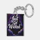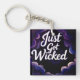 This vibrant keychain features a whimsigoth inspired art print with the amusing words Just Got Wicked.