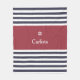 Wide Navy Blue Horizontal Stripes Red Name Daisy Fleece Blanket