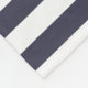 A modern wide horizontal stripes pattern fleece blanket in navy blue and red. Personalise by adding your name beneath the chic retro daisy logo.