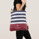 Wide Navy Blue Horizontal Stripes Red Name Daisy Tote Bag