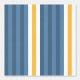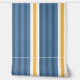 The design showcases sophisticated wide stripes in saffron mango, butterscotch, warm yellow, shades of dusty blue and white arranged vertically. It brings an air of refinement and warmth to any environment.