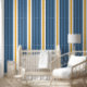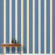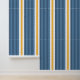 Wide Saffron Mango, Dusty Blue and White Stripes Wallpaper