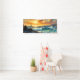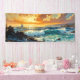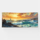 Wide Seascape Mediterranean Golden Sunset. In a scenic coastal panorama, a small yacht drifts in the midground, embraced by a golden sunset. The rocky coastline, bathed in fading sunlight, adds to the tranquil beauty. Waves gently surf in the foreground, epitomising relaxed living.