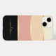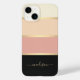 A classy and stylish modern script personalised name Case-Mate iPhone 14 Case with wide colourful and gold striped design featuring Boss Girl Chic colours of of cream, peach, blush and black. Easily personalise this monogram case with your own name to make it your very own.