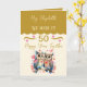 Wife 50th anniversary owls gold pink card