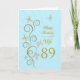 For a wife, 89th Birthday with golden butterflies. A floral scroll with stylised flowers and delicate butterflies. A stunning birthday card. See the whole range of cards for ages and relationships in my store. Golden butterflies made from delicate scroll work flutter around this elegant and beautiful birthday card