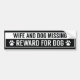 Wife And Dog Missing Reward For Dog Bumper Sticker