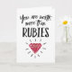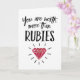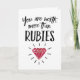 Wish your wife a happy anniversary with this unique typography design featuring the message, "You are worth more than rubies." Design features hand-drawn ruby with light rays. Inside includes the below message but can be customised to fit your needs.
