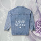The "Wife life est. 20XX" denim jacket is a stylish and personalised option for showcasing your marital status. This jean jacket features white script typography that beautifully displays the text "Wife life est. 20XX" on the back where you have the option to personalise it by adding the year of your choice, making it a unique and meaningful piece.